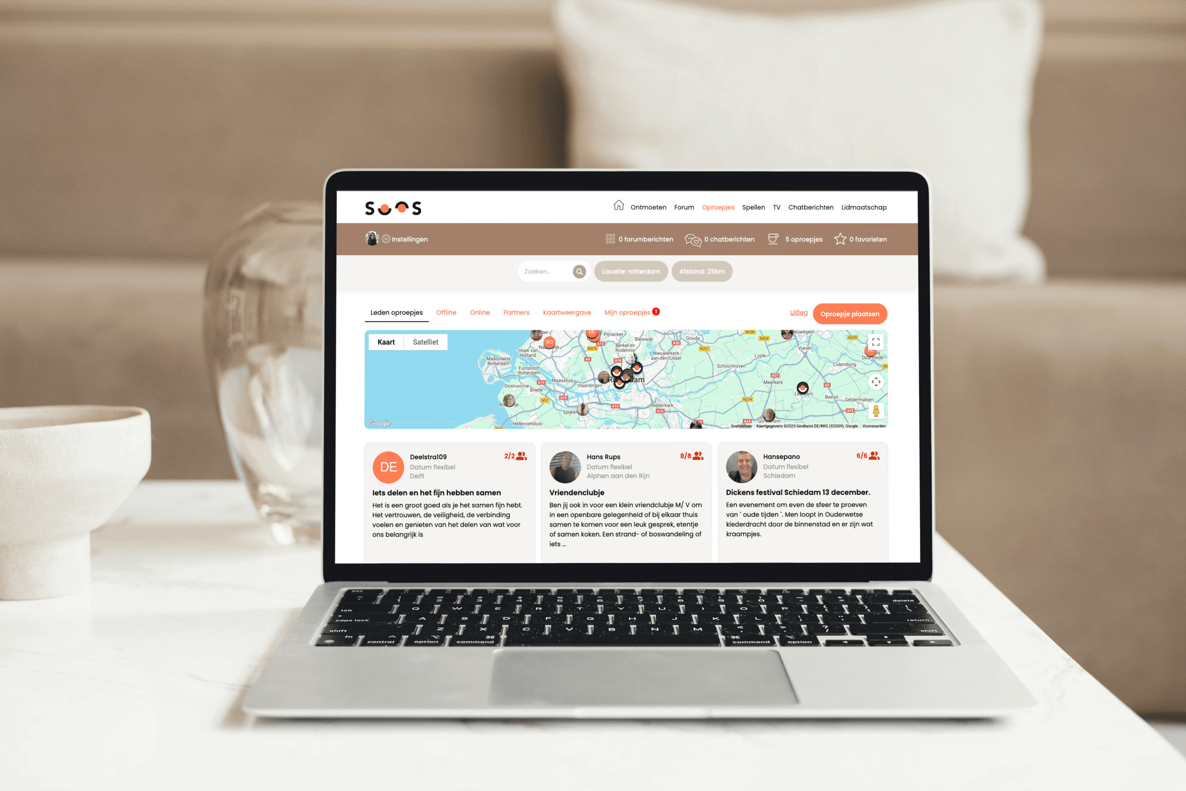 SooS is een online platform voor 60-plussers dat als doel heeft om sociale verbinding te stimuleren en zo eenzaamheid te verminderen. Toen ik begon, bood het platform al profielen, een chatfunctie, online spellen en een forum. In de forumberichten zag ik een opvallend patroon: leden plaatsten hier voornamelijk oproepen voor fysieke ontmoetingen, zoals samen wandelen, koffie drinken of een museum bezoeken. Dat signaal maakte voor mij duidelijk dat de behoefte aan echte ontmoetingen groter was dan de behoefte aan online contact.